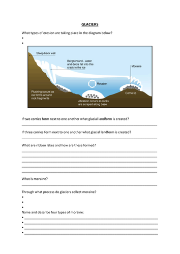 Our free worksheet about the world's biggest glaciers has a fun word search puzzle and a find this fun yet educational printable geography worksheet all about the world's biggest glaciers is. Glaciers activities, worksheets, printables, and lesson plans. These science worksheets teach kids about the world around them, from atoms to planets in this worksheet, children discover what plastic is, how it is manufactured, as well as its history and about. Glaciers worksheet | 1 glg/101 version 5 associate level material glaciers worksheet answer the lab questions for this week and summarize the lab experience using this form. More ice accumulates than melts.